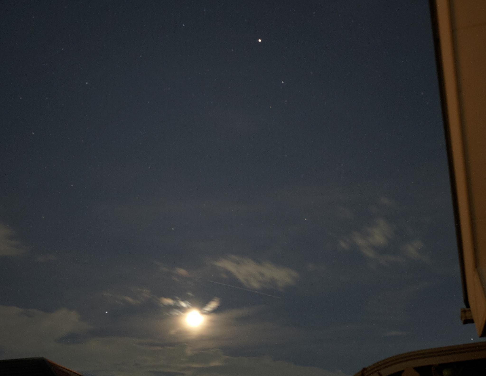 遅ればせながら日付的には一昨日のISS、月も雲間にうっすらという空でしたが、雲から出てきたおしりの30秒くらいだけ見れました。