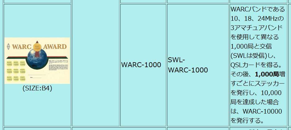 先日、WARC-1000のルールでJARLへ質問しました。画像のように、「10000局を達成した場合は、WARC-10000を発行する」、10000は新規アワード、1枚1,000円ですか?と。あり得ないと思っていましたが、やはりアワード1,000円+ステッカー9枚=5,500円という回答でした。誤解を生む表現でした、と近日修正されるようです。