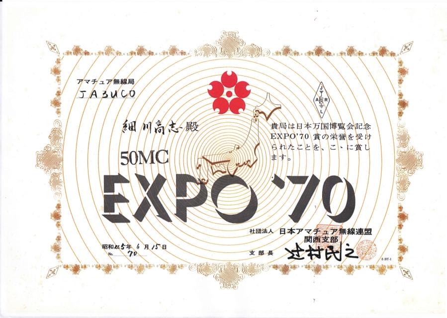 詳細はhttps://jarl.gr.jp/osirase/expoawd.html JARL関西地方本部