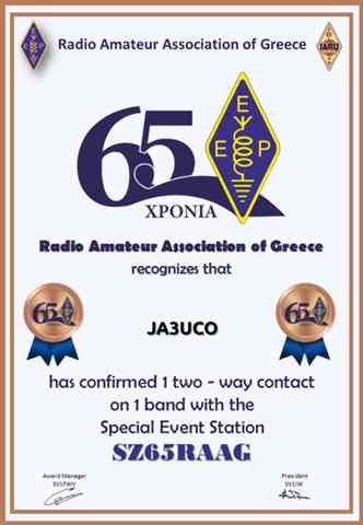 ギリシアアマチュア無線連盟創設65周年記念局です。