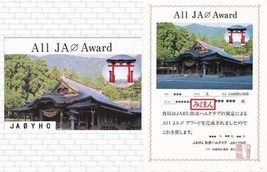 新潟県のJARL弥彦クラブから発行されているアワード、1974年から現在まで継続発行されています。受領済みの方も多いでしょう。