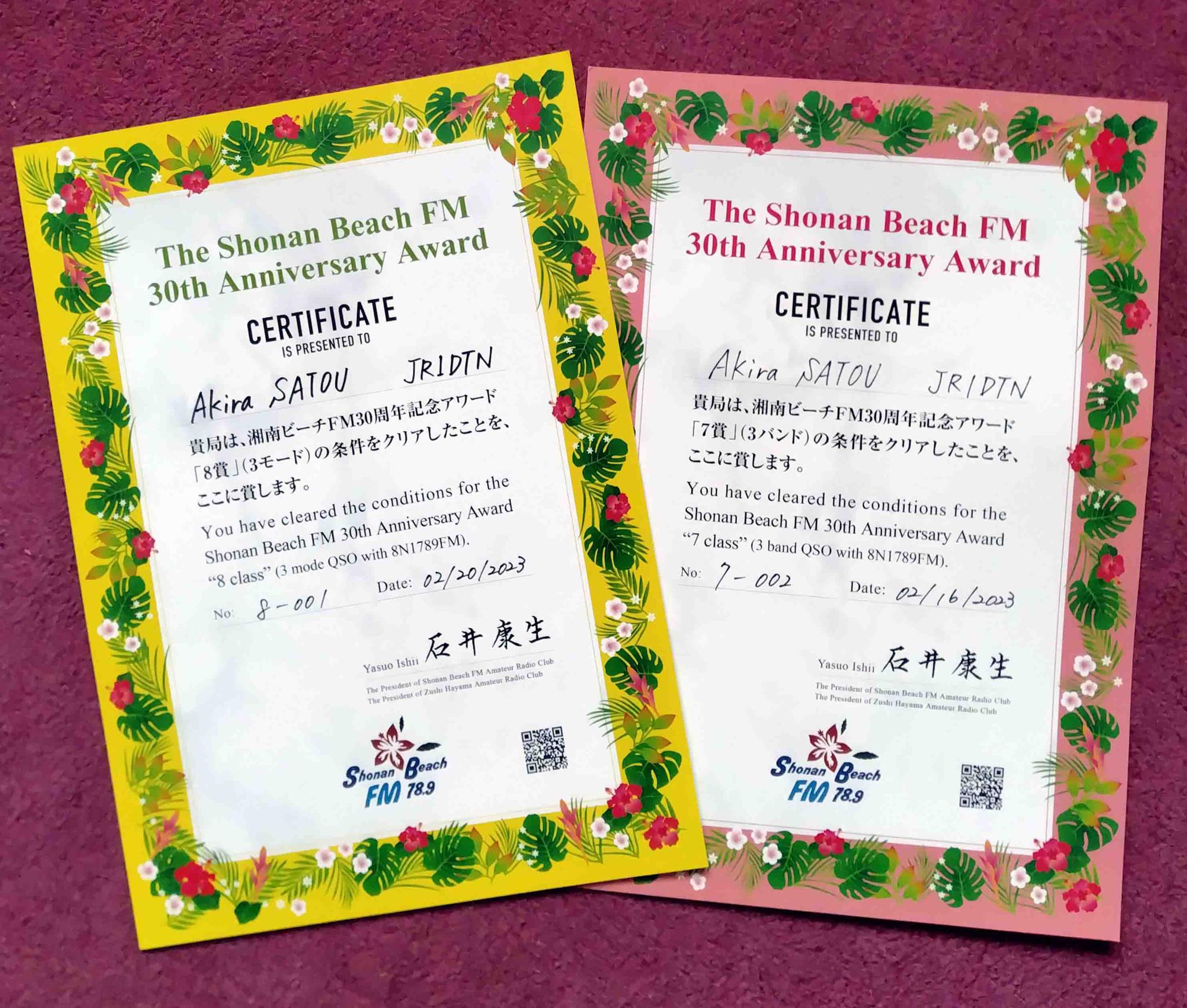 8N1789FM/1 3か所目の移動地と交信出来たので申請!