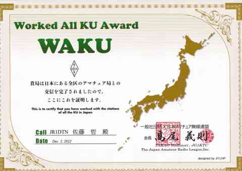 デザインはJAG#1025 JI1LNP松永OMです。アワードの右下にもクレジットが印刷されています。