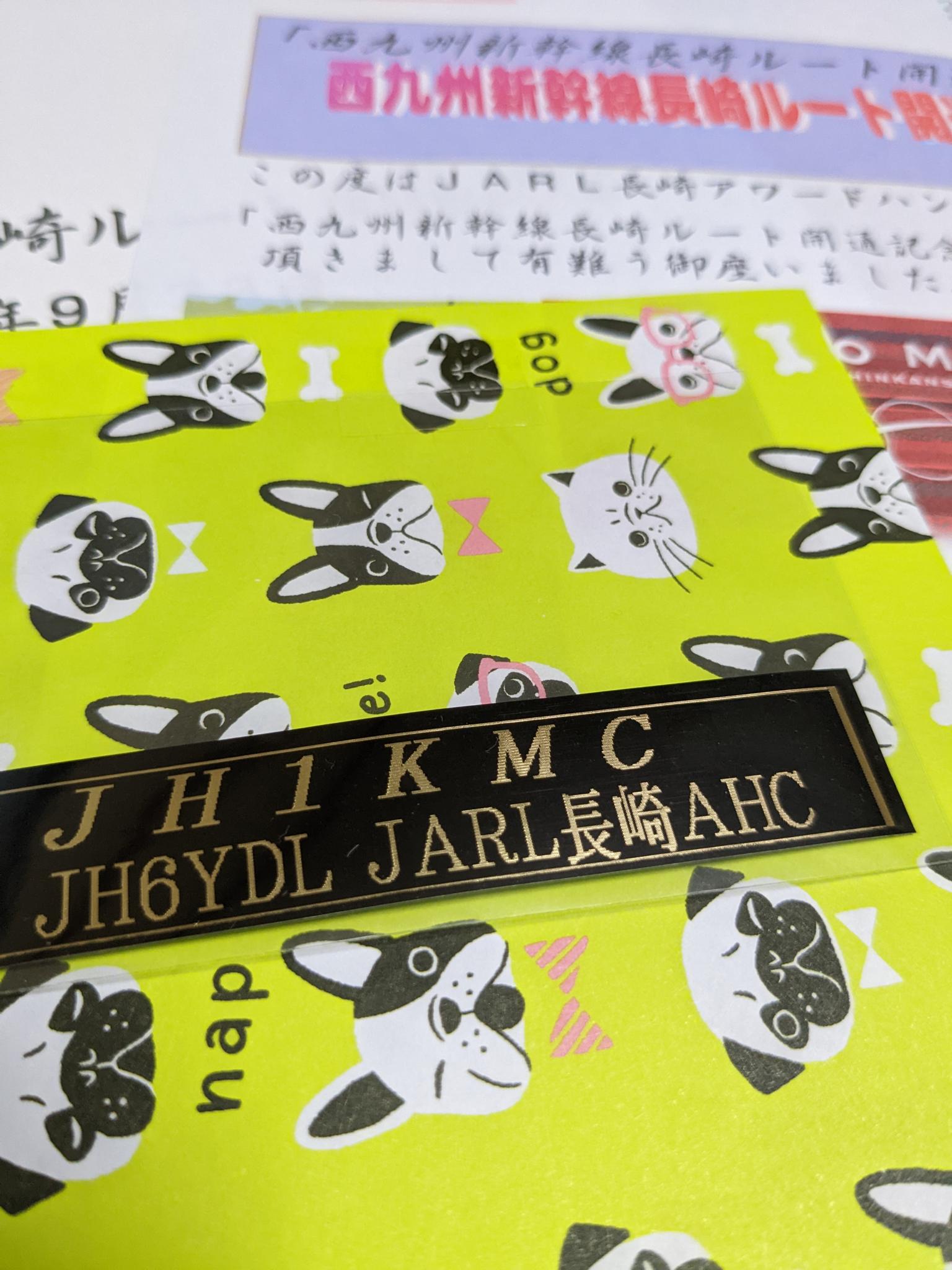 アワードと共に、コールサイン入りのステッカーを