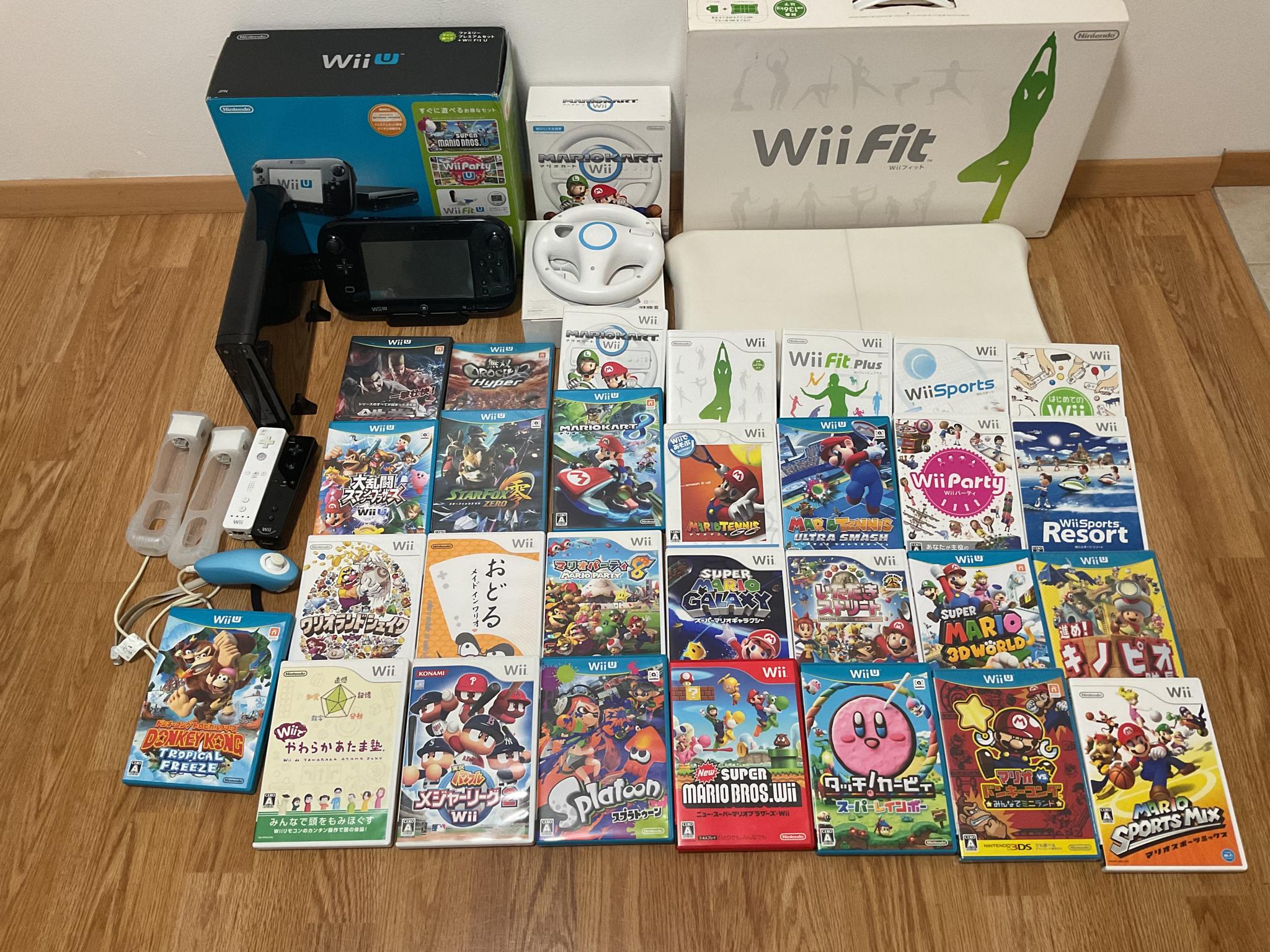Wii U 本体、 バランスWii ボード、 Wii ハンドル 2個、
