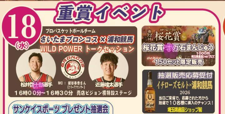 浦和の月曜日「桜月特別」、火曜日「桜草特別」・・・ともに6枠に櫻井JKがいるのは大いに気になります。
