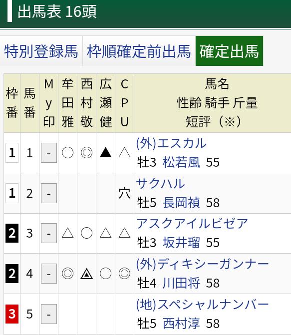 他のレースでの気になっていた馬の配置から②番「ジャスティンパレス」が浮上して来ました。少し軽めの扱いだったのに…