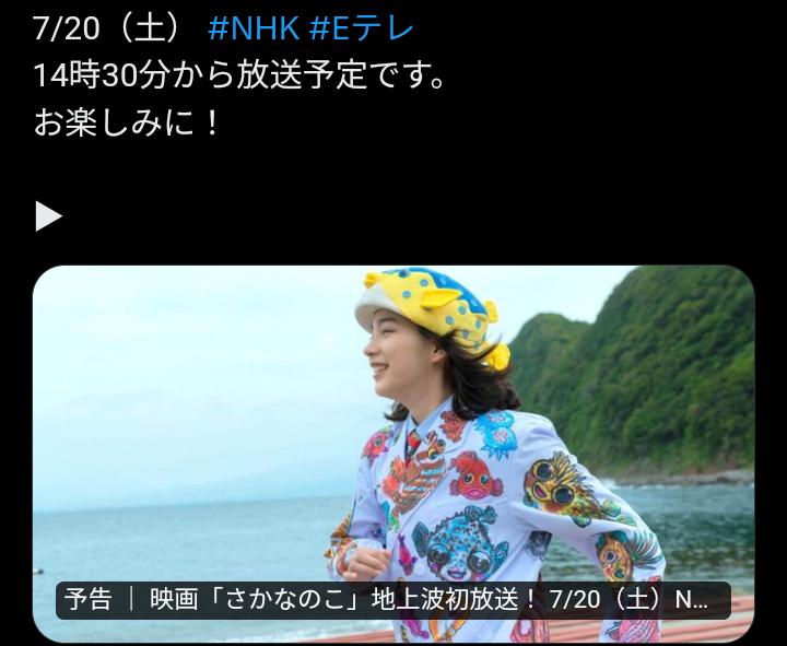 なので「朝ドラ」ネタに網を張っていたら「あまちゃん」でヒロインの「のん」さん(能年玲奈)の主演映画「さかなのこ」が7/20にNHK eテレで放送されるらしい。彼女の映像をCM以外の地上波で視るのは貴重なんだが…たぶん競馬ファンは「ウイニング競馬」かな?