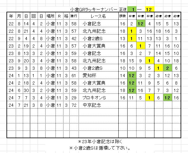 小倉GRのラッキーナンバーは正逆01-12