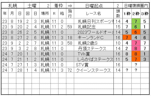 札幌偶数日MRは奇数日MRの2着枠の起点2が複勝圏内
