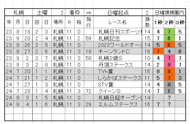 札幌偶数日MRは奇数日MRの2着枠の起点2が連対圏内