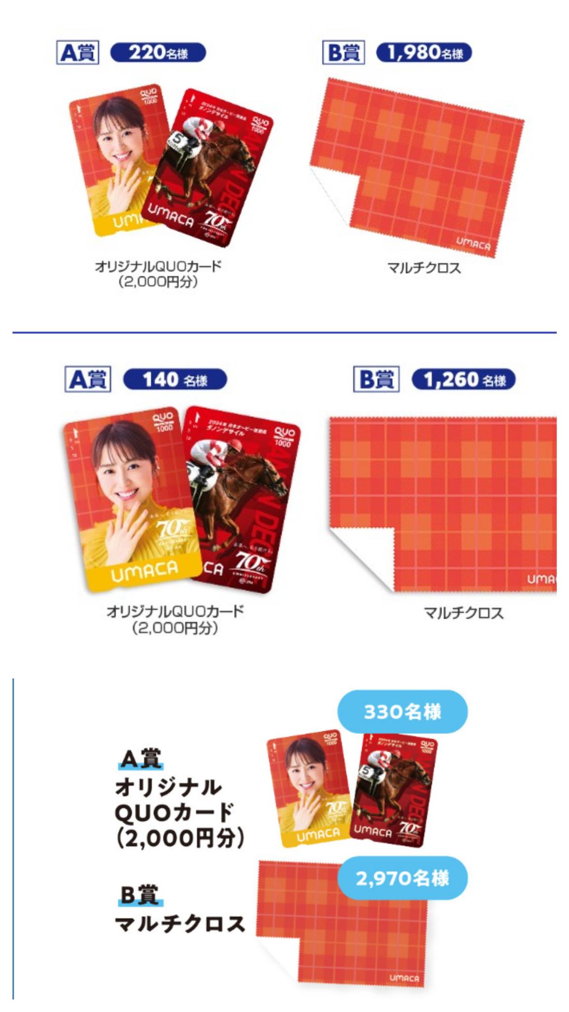 11/10に各競馬場において「UMACAスマート抽選会」なるものがありますが、競馬場ごとにA賞、B賞の当たりの数が違うのが気になります。