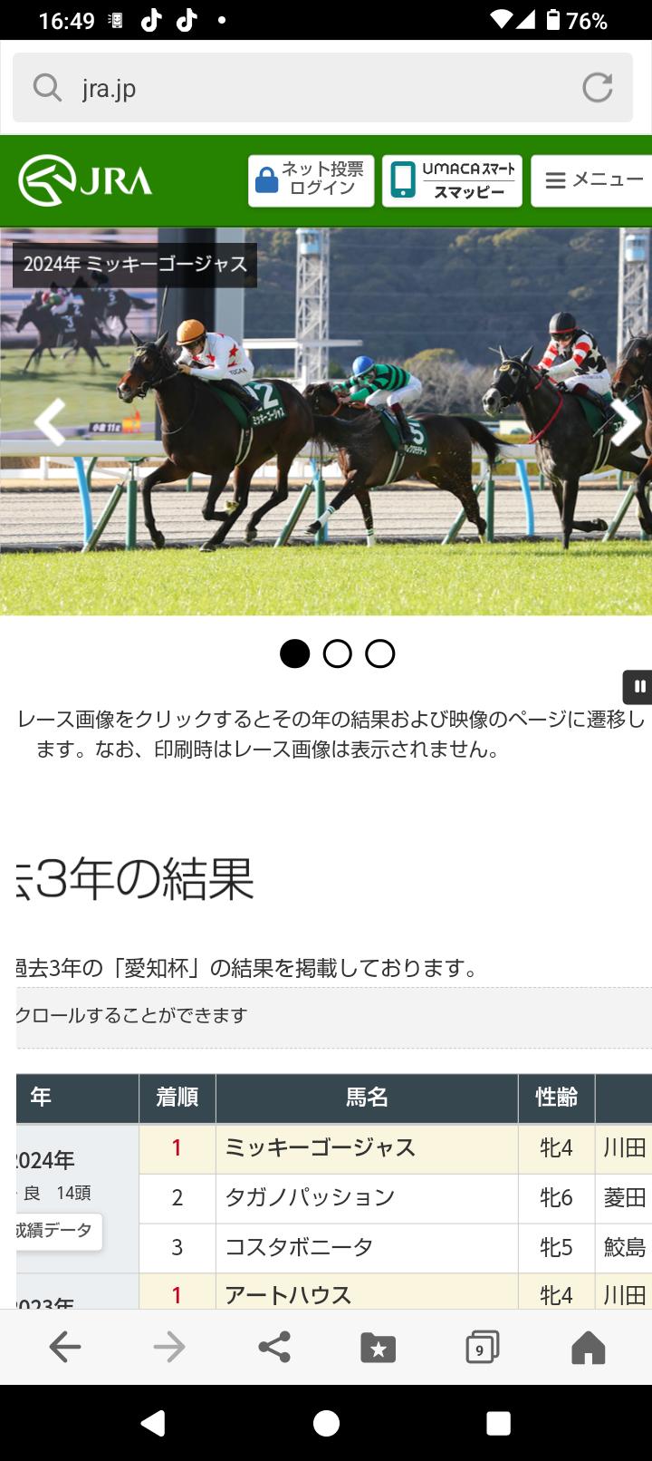 いつもJRAhp記載の昨年の画像