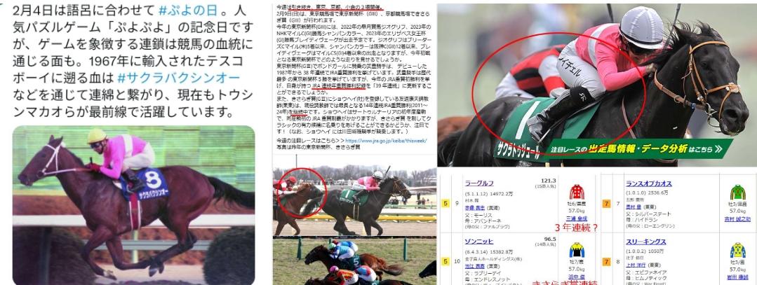 ・2月4日のJRAVANのポスト。『ぷよぷよ』とサクラバクシンオー。