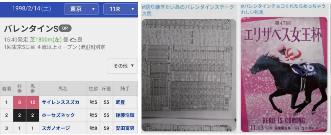 ハナムケくんのXのリツイートには、『バレンタインステークス』ネタ。
