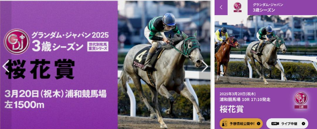 桜花賞HP画像タップをすると昨年の3着馬が出てきます。(2着に見えますが)