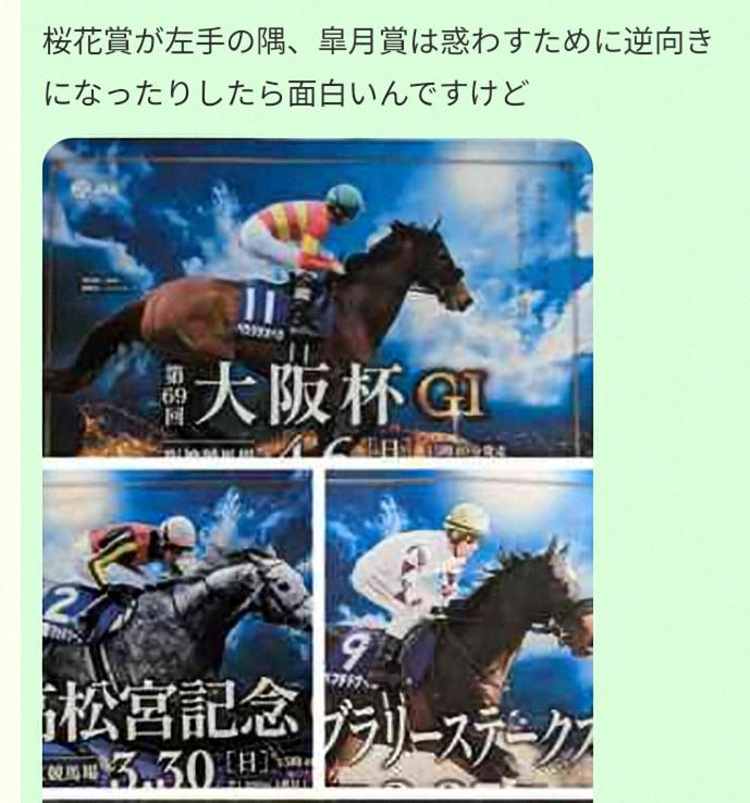 4頭ポスターGI4レース目で初めて左向き左メッセージとなります。