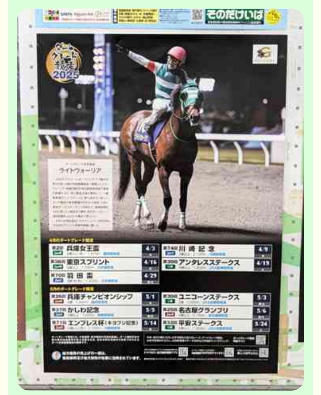 サインあるあるさんから以前掲載して頂いたポスター(ライトウォーリア)昨年の8枠内側は馬券になることでしょう、人気ですが、当のライトウォーリアは2着と見てます。