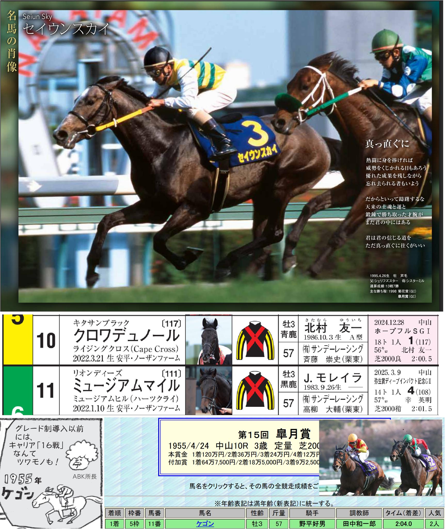 2番人気・2着と1番人気・4着の弥生賞組。桜花賞と皐月賞繋がり【モレイラ&森一】。名馬の肖像【セイウンスカイ】※詳細は南斗ハズレ馬券さんが述べてくれてます。