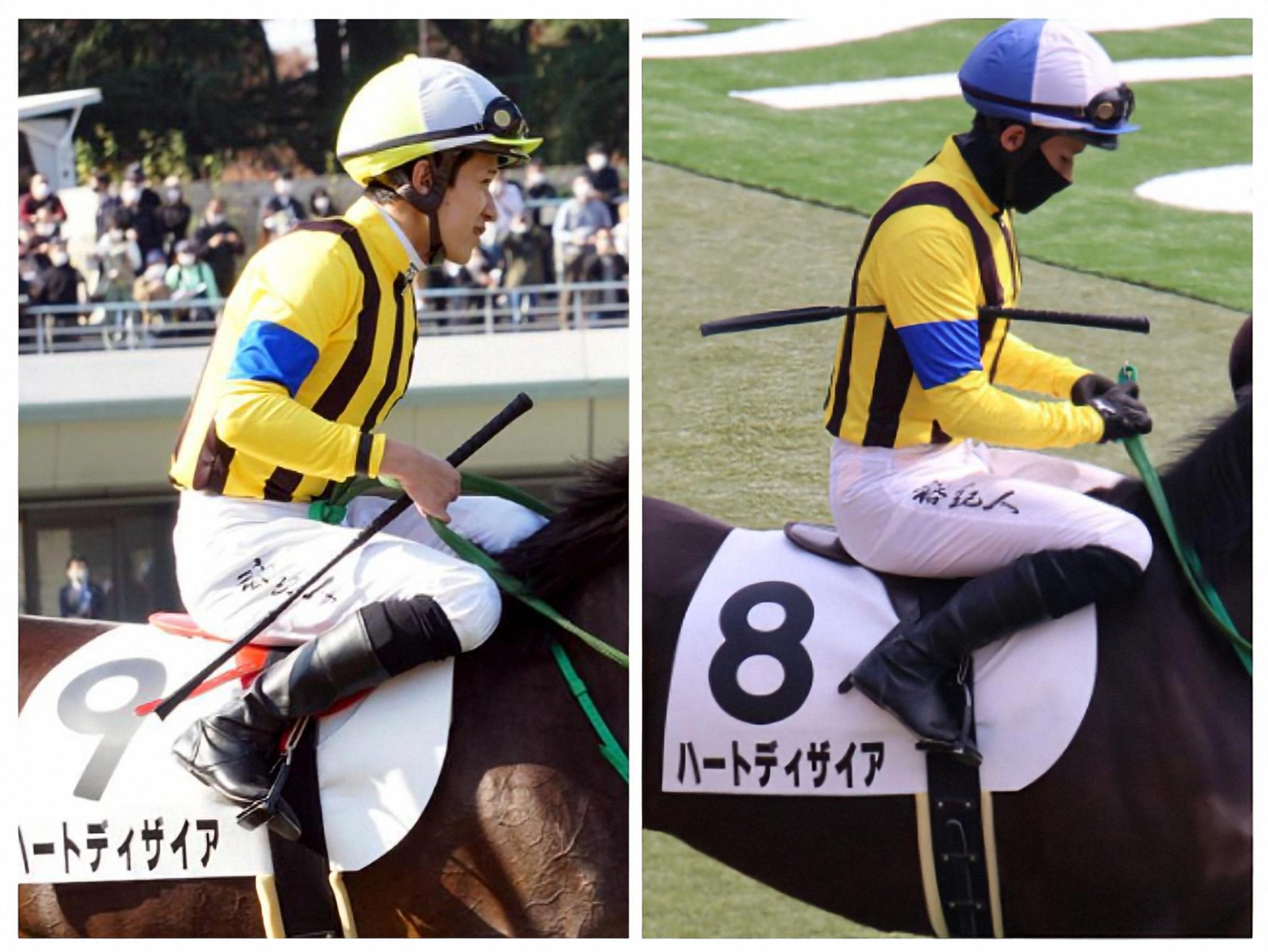 この中にいる「ハートディザイア」という馬ですが、新馬戦が「黄色」、2戦目が「青」の染め分け帽というかなりレアな馬ですね。