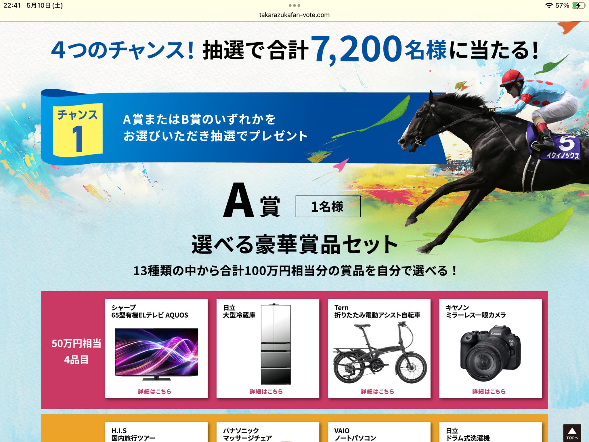 宝塚記念ファン投票の中に抽選で当たる豪華賞品の右上。。。赤帽子、ルメール、5番。。。