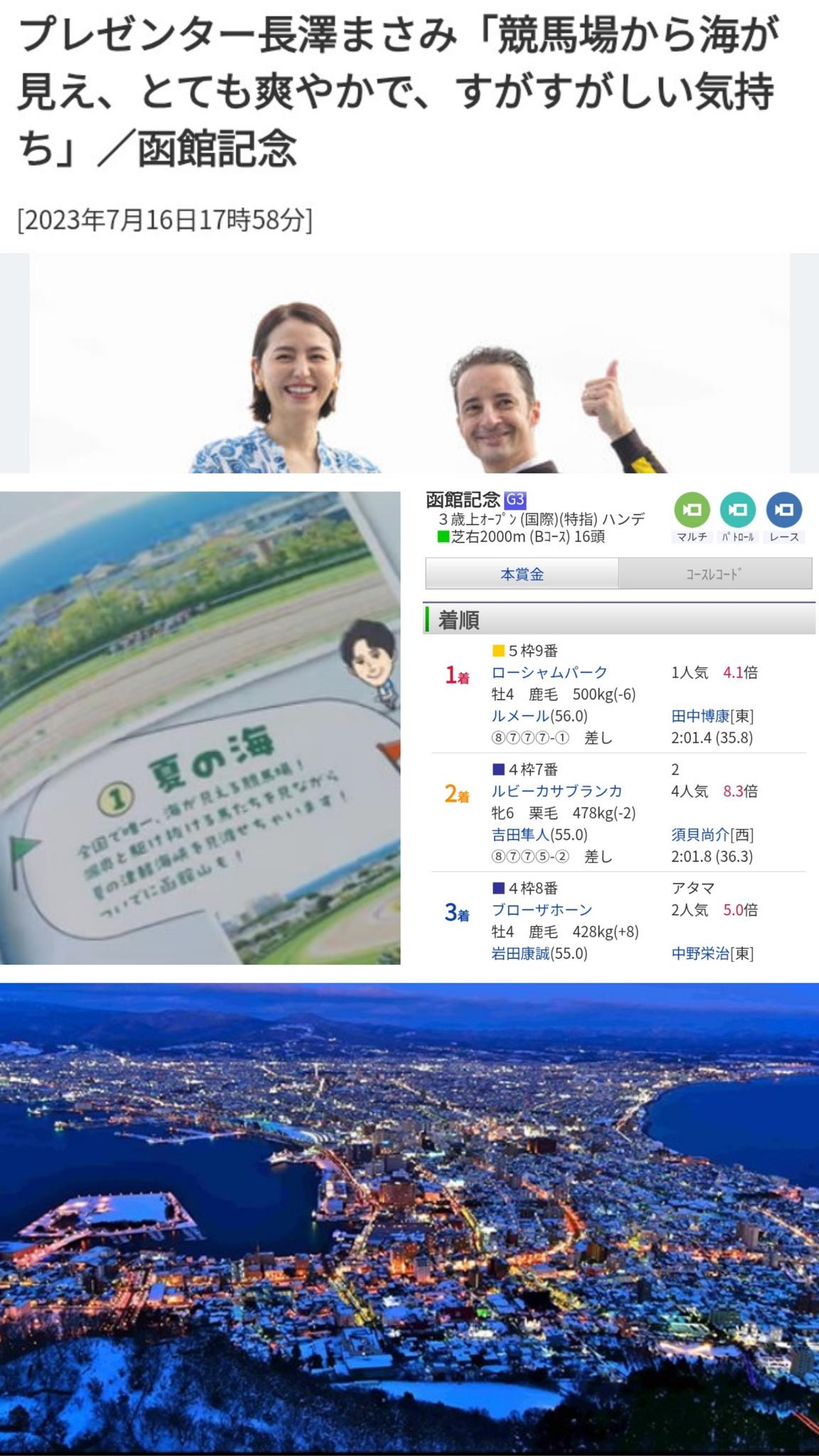 ずっと気になっている「函館記念」の勝ち馬ですし、ルメールで勝ち今回は乗り替わり、プレゼンターは長澤まさみさん、函館山、函館競馬場などなど色々と繋がっているんですけど…