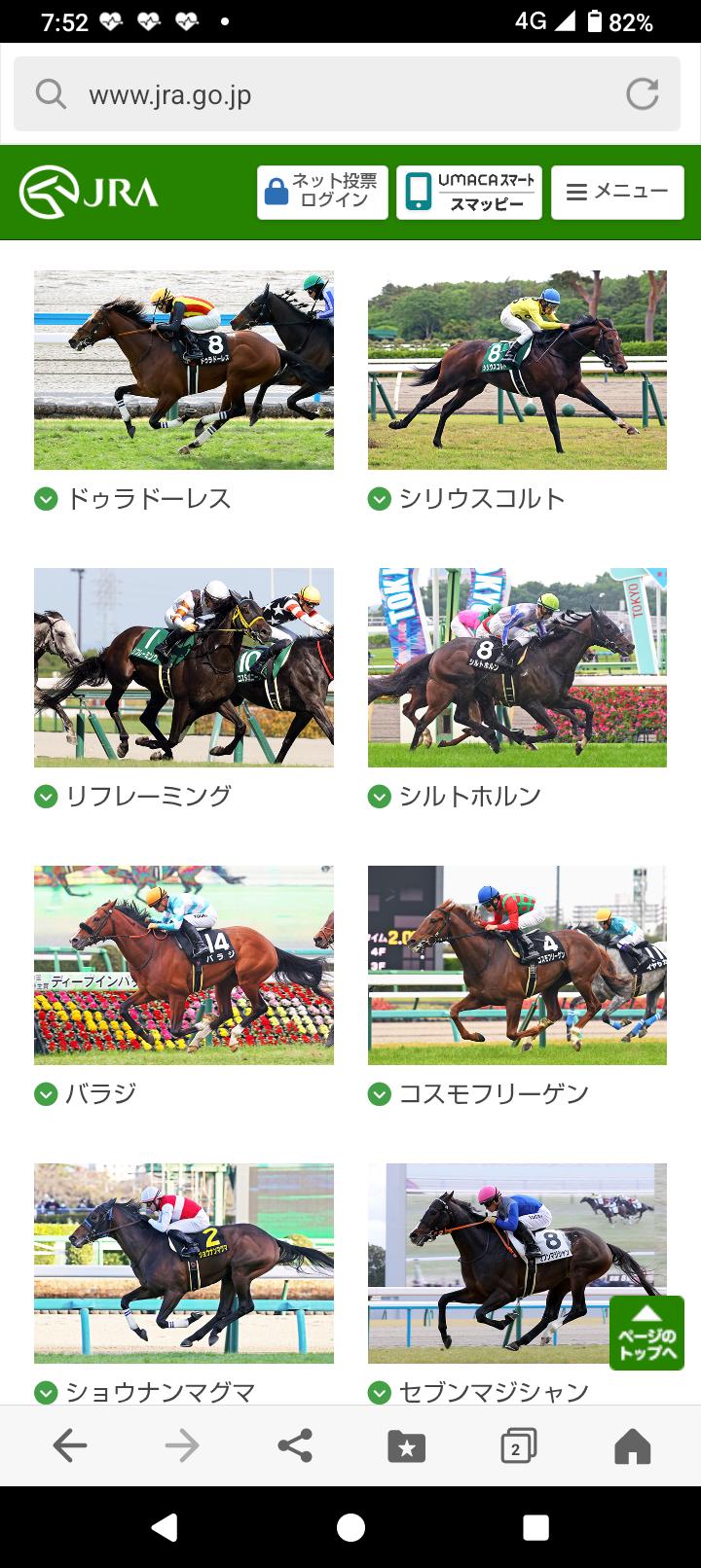 hp出走馬情報の8頭の写真