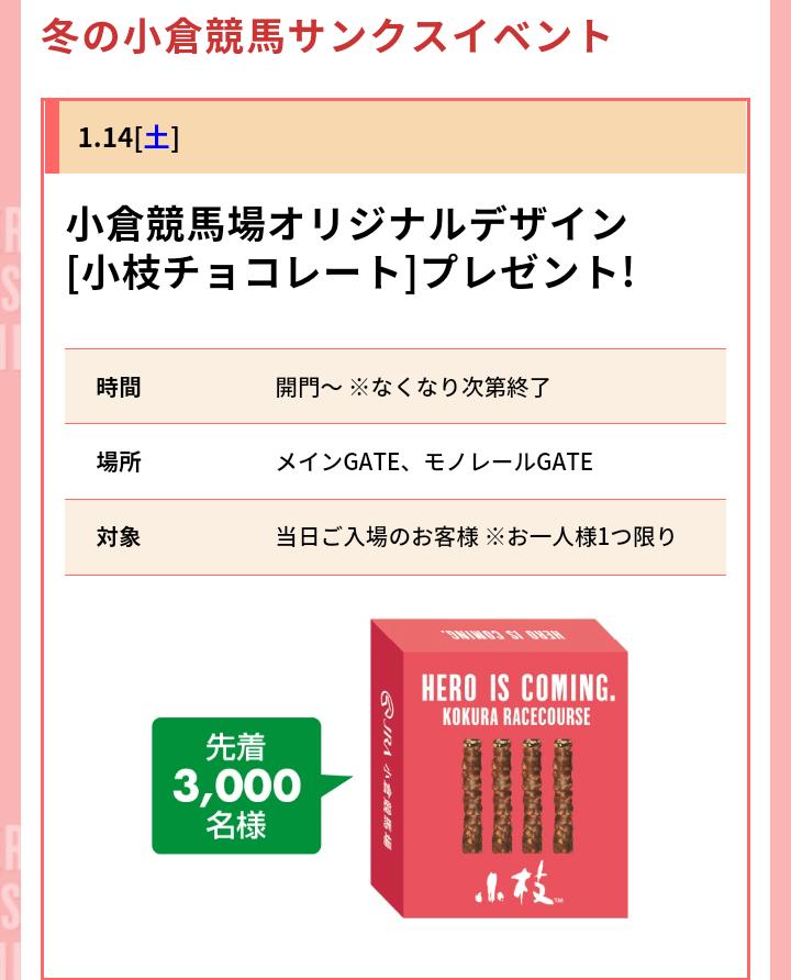 小倉競馬場で小枝チョコレートのプレゼントがあったらしい