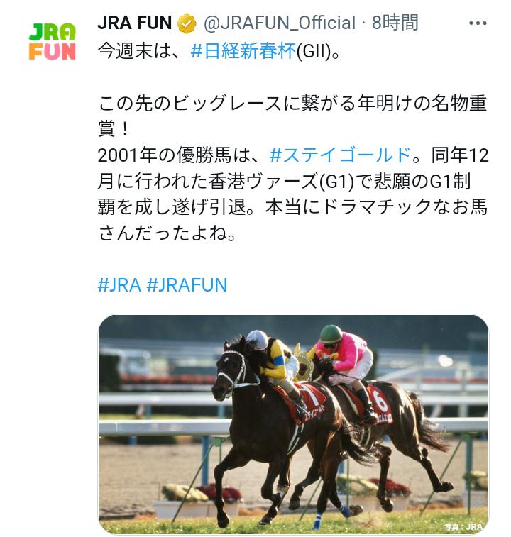 日経新春杯のツィッターはステイゴールドなんだけと、香港ヴァーズの事が書かれているのが気になります。