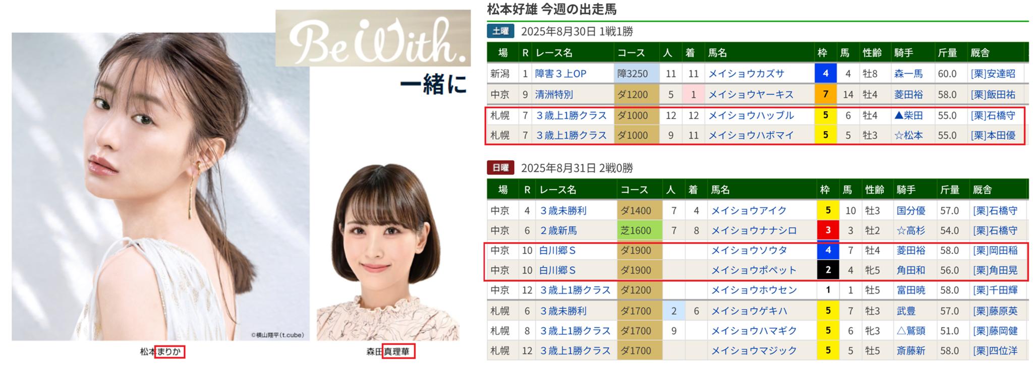 菜:中京2歳は「まりか・まりか」「松本・松本」で。