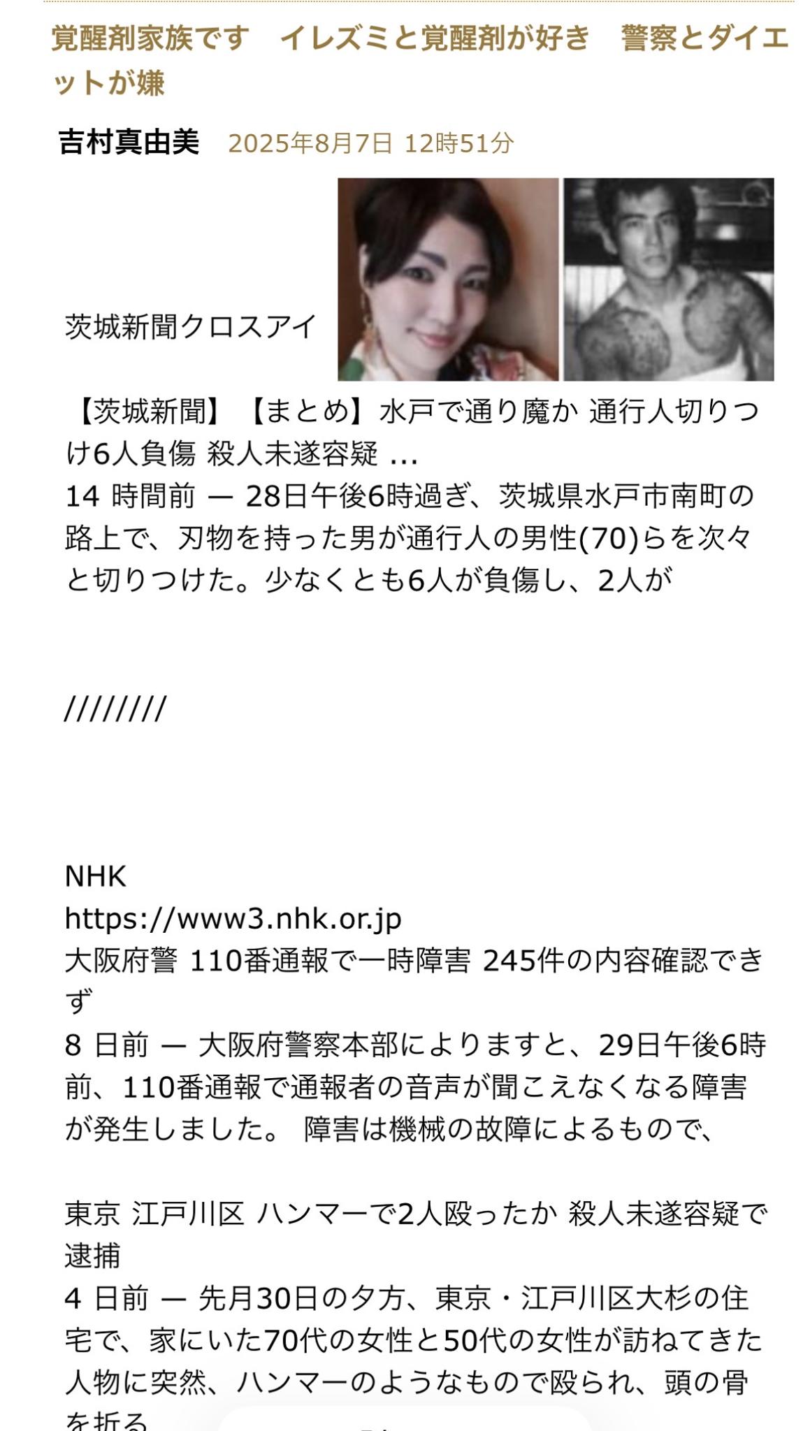 【茨城新聞】【まとめ】水戸で通り魔か 通行人切りつけ6人負傷 殺人未遂容疑 .