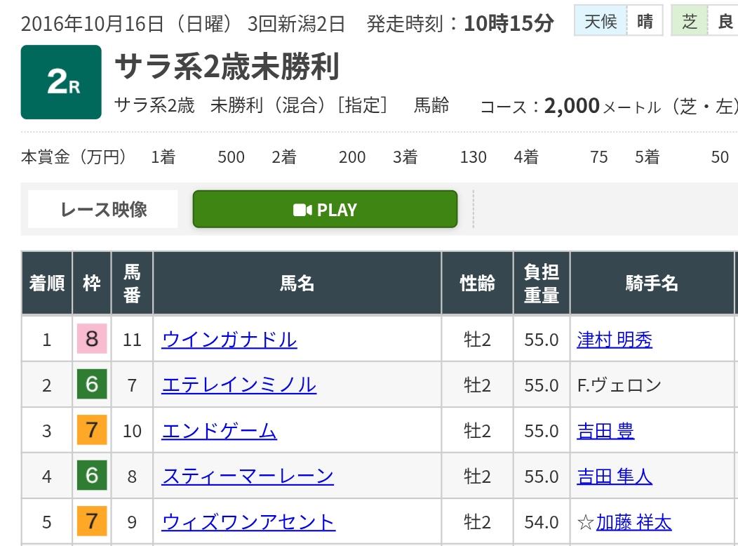 日曜⑮②番 ⑮(裏②)中村1着 ②番2着