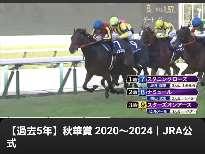 ポスター内のピンボケ157…気になってました、と言うのは、J公式秋華賞過去5年からスローリプレースで電光掲示板の157が映ってたスタニングロースです。