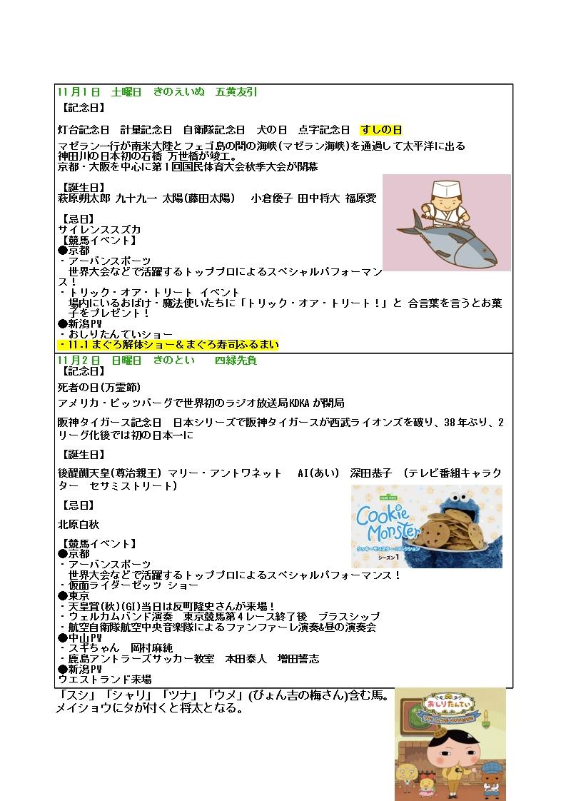 天皇賞の週のこよみ・イベント@カスリもしなかった菊花賞