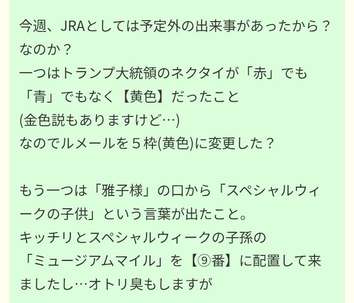 JRA側は「青」だと思っていたのではないか?だとしたら本来は馬連は「⑥−⑨」だったハズでコレは天皇皇后両陛下の結婚記念日でもありスペシャルウィーク−ステイゴールドで決まった時の出目とも合致します。それに単純に「クリス−クリス」の組み合わせですし…