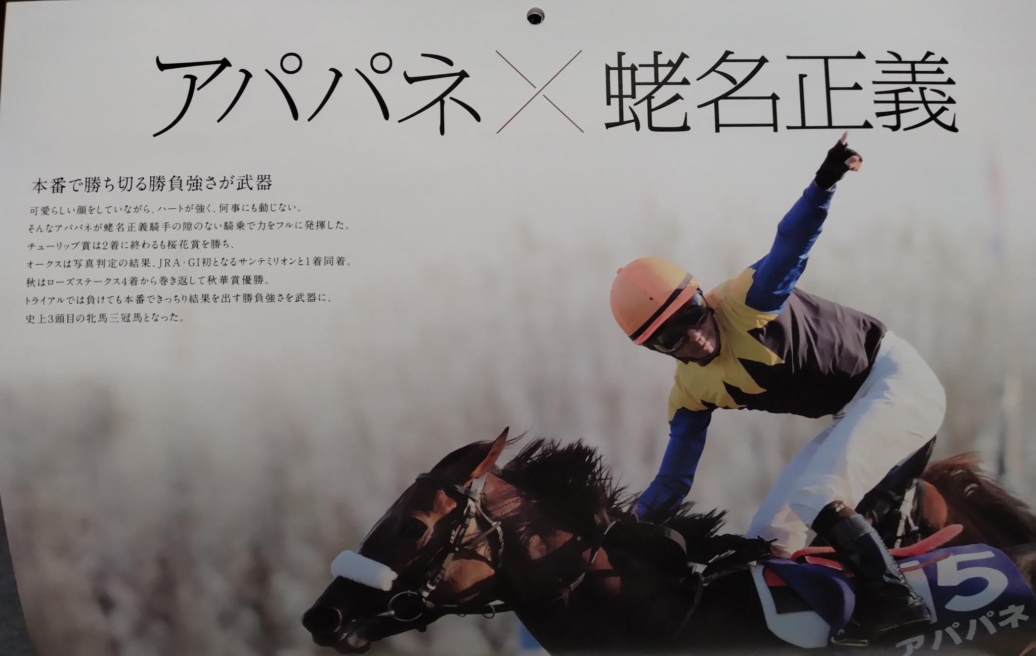 この馬アパパネ(の娘)✕蛯名(調教師)で無料カレンダーの9月の組み合わせですね。馬主も同じ金子真人氏