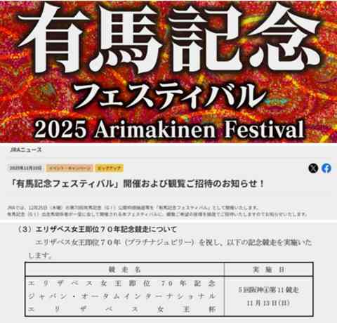 今週で考えるならロイヤルファミリー的にも、昨日発表された、【第70回有馬記念フェスティバル】。