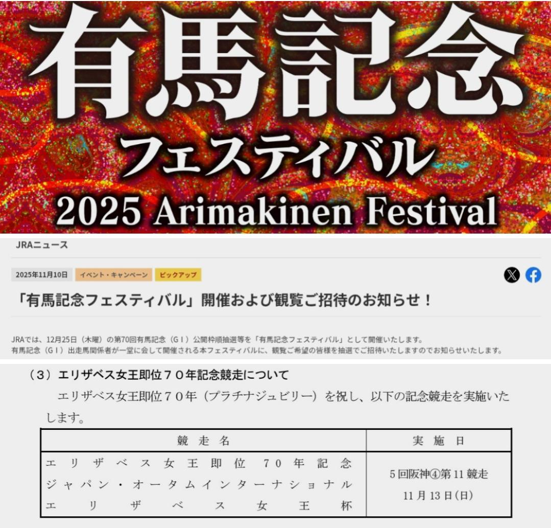 今週で考えるならロイヤルファミリー的にも、昨日発表された、【第70回有馬記念フェスティバル】