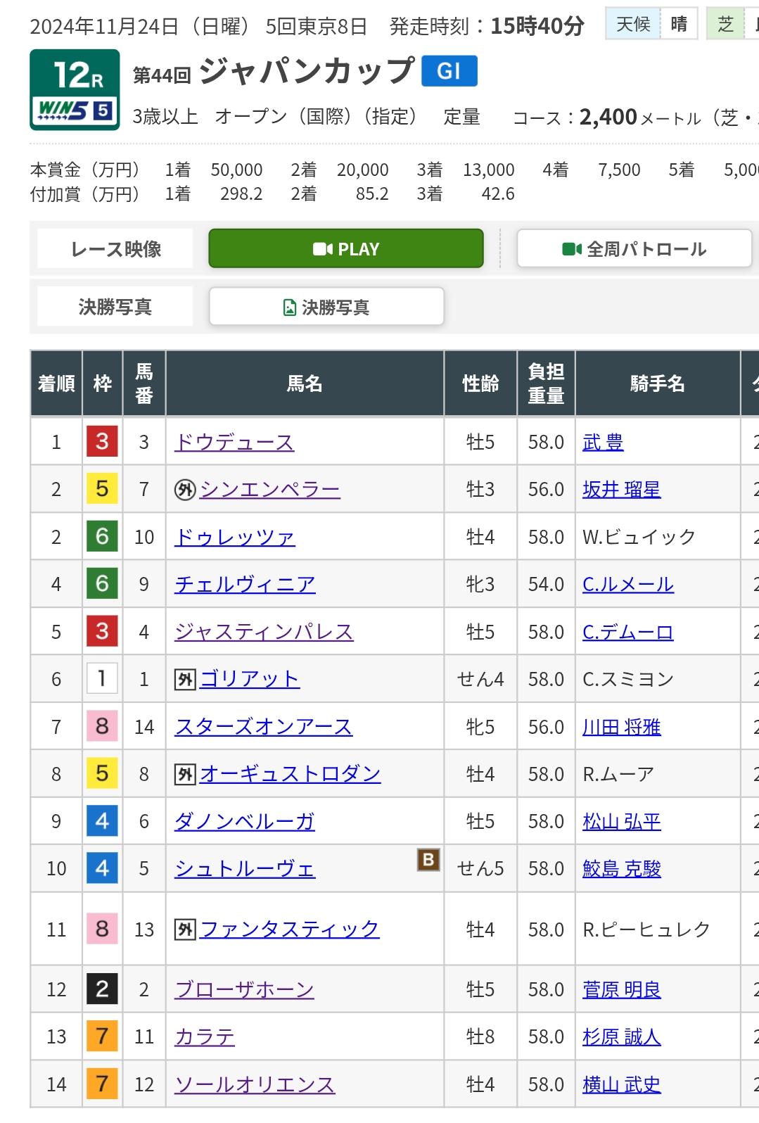 菜:武豊騎手不在のJC。レープロのオーソリティ。別角度なら2024年。ジャパンカップ③