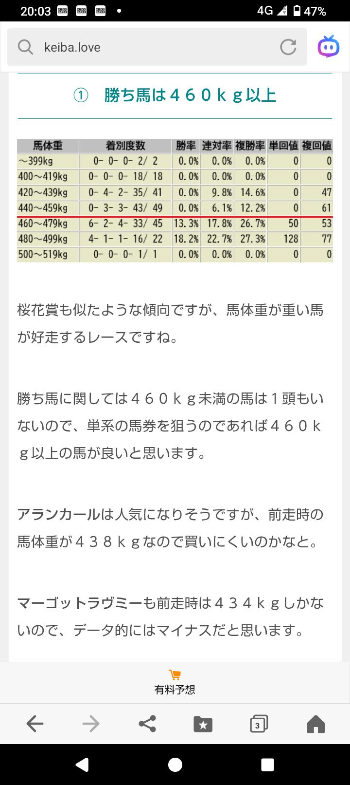 馬体重の件ですがネットにこのようなデータが有りました!