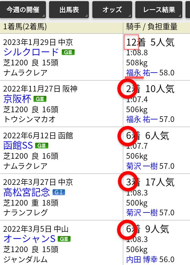 【2636】が隠れているのはキルロードの前2走〜前5走の着順です。