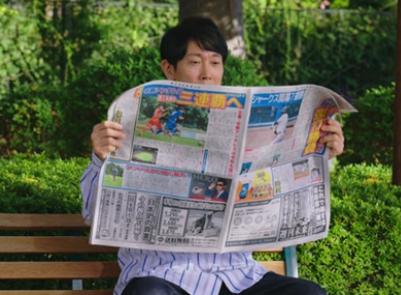 このメイキング映像、何度か見直しましたがやっぱり新聞を強調しているように見えるんですよね。