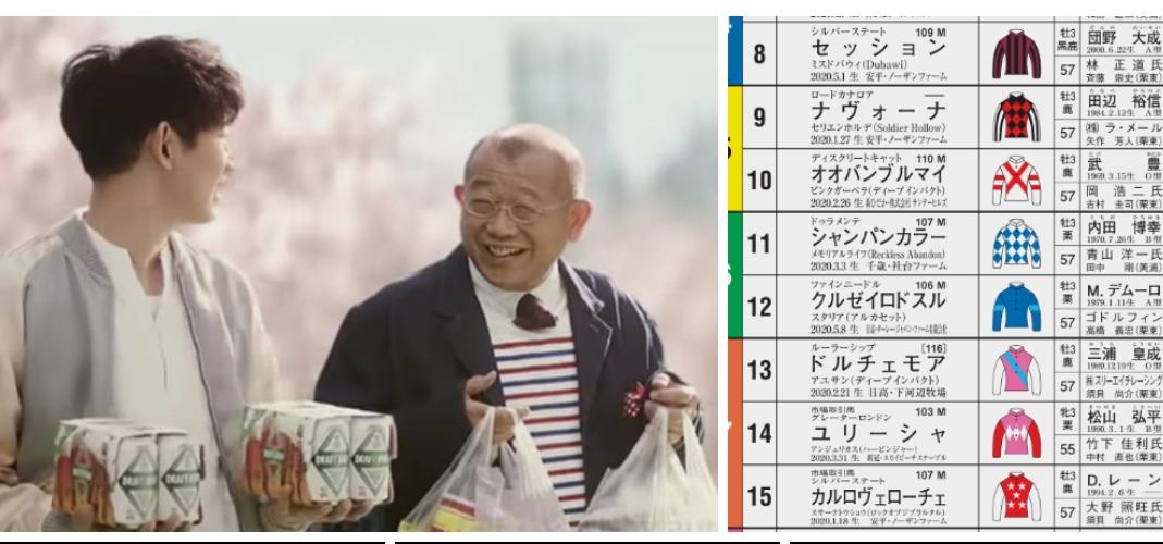 結果、【武田】と【松平】の間に挟まれたのは、三方ヶ原の【三】をもつ三浦のドルチェモアと2016年桜花賞ジュエラー青山オーナーのシャンパンカラー