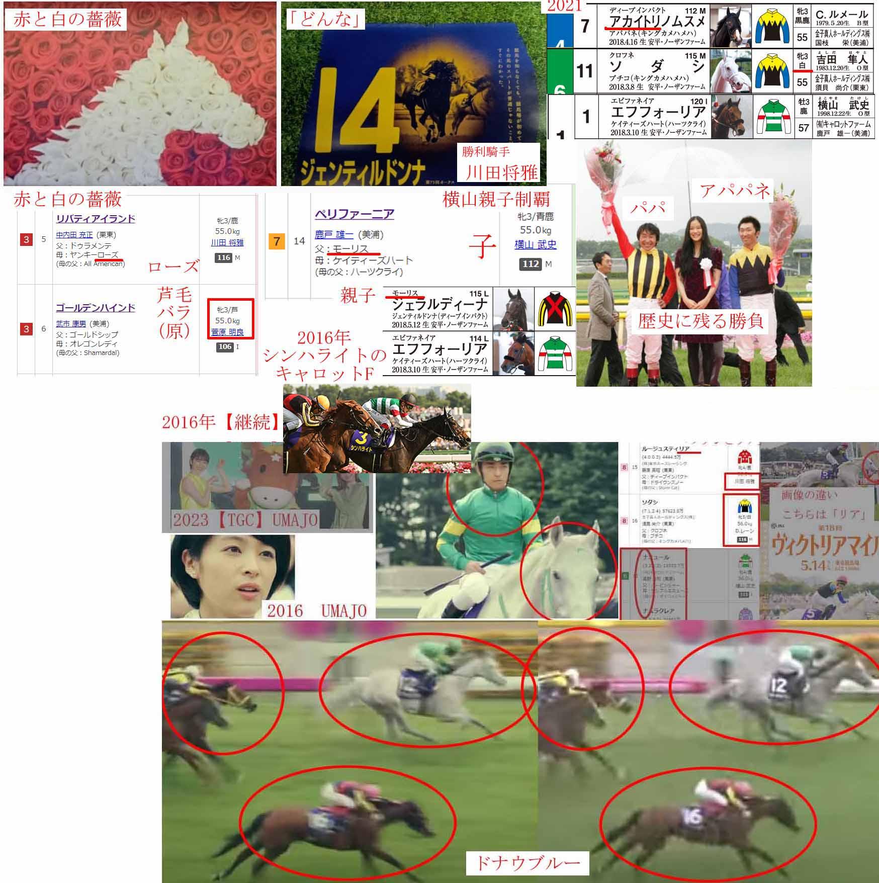 共に共にオークス馬の娘であり、母は共に、5枠で勝利し、2着にキャロットファームを連れてきた。というのも面白い。