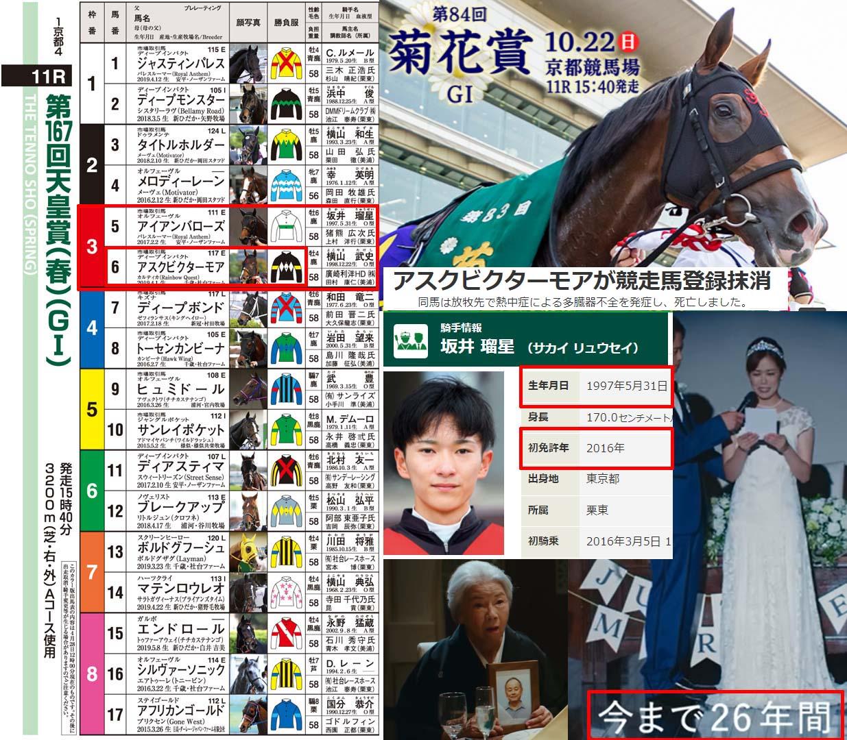先日亡くなられた谷村さんに目が行きますが、今週菊花賞で強調されているのは、夏に死亡したアスクビクターモア。