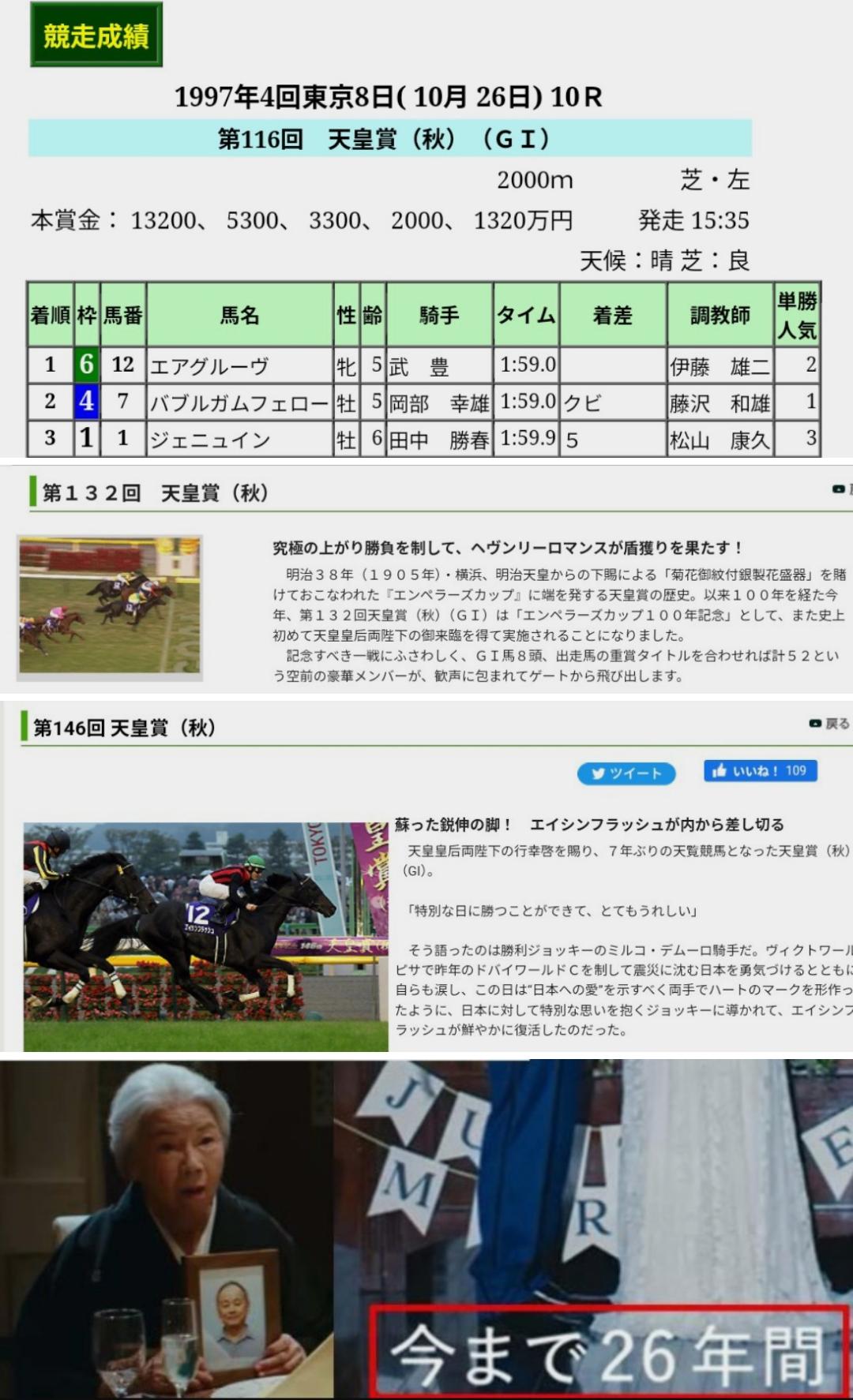 【26年前天皇賞・秋】1着 エアグルーヴ・武豊