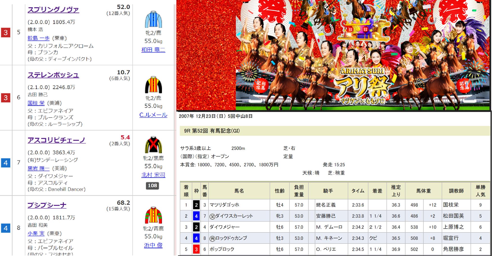 菜:【アリ祭】。2007年有馬記念が「ぎっしり詰まった」阪神JFの【3枠と4枠】。