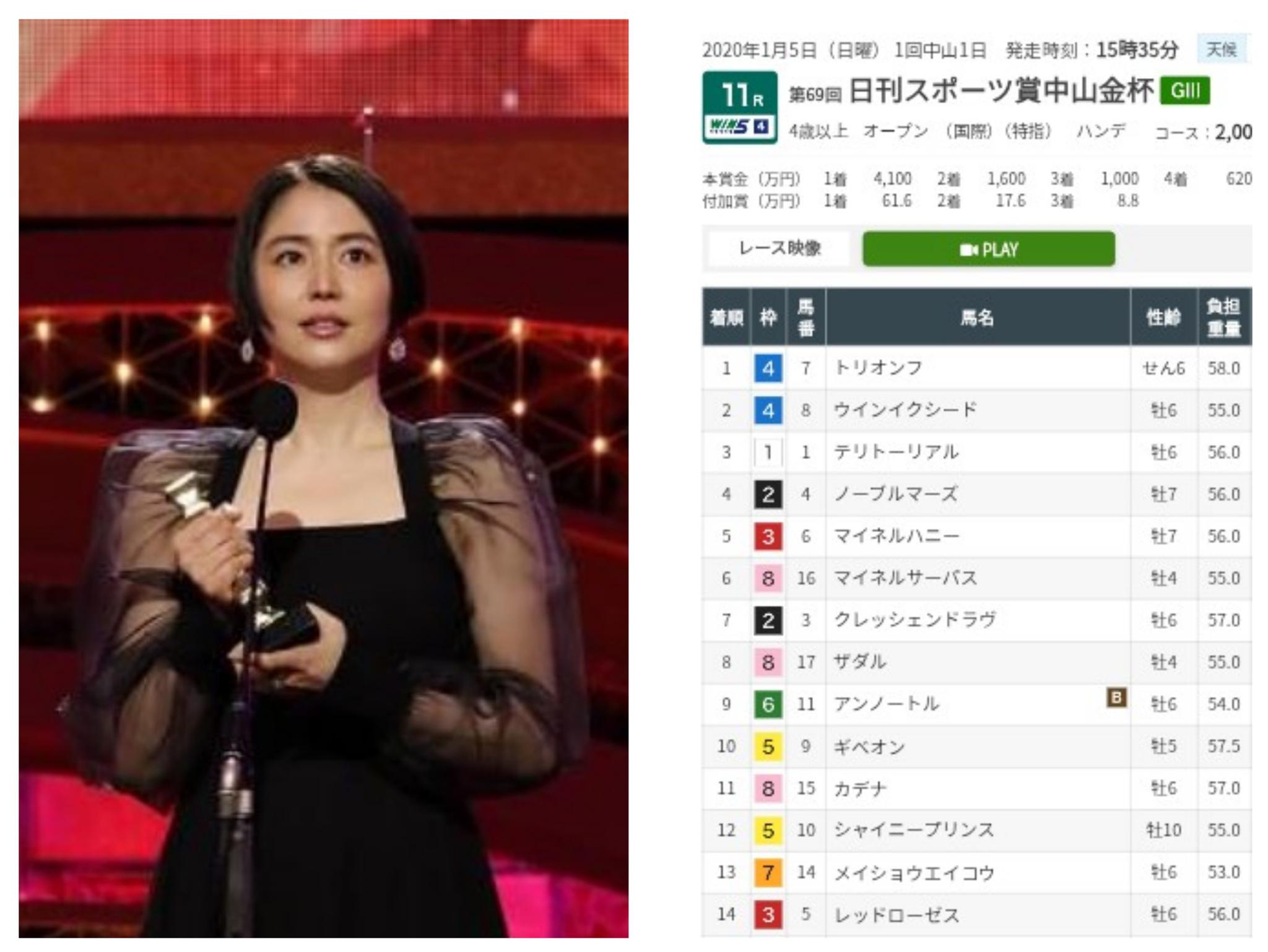 また同年の第33回「日刊スポーツ映画大賞」においても「優秀主演女優賞」などを受賞しています…ので4枠ゾロ目も踏まえて軸は⑥番から