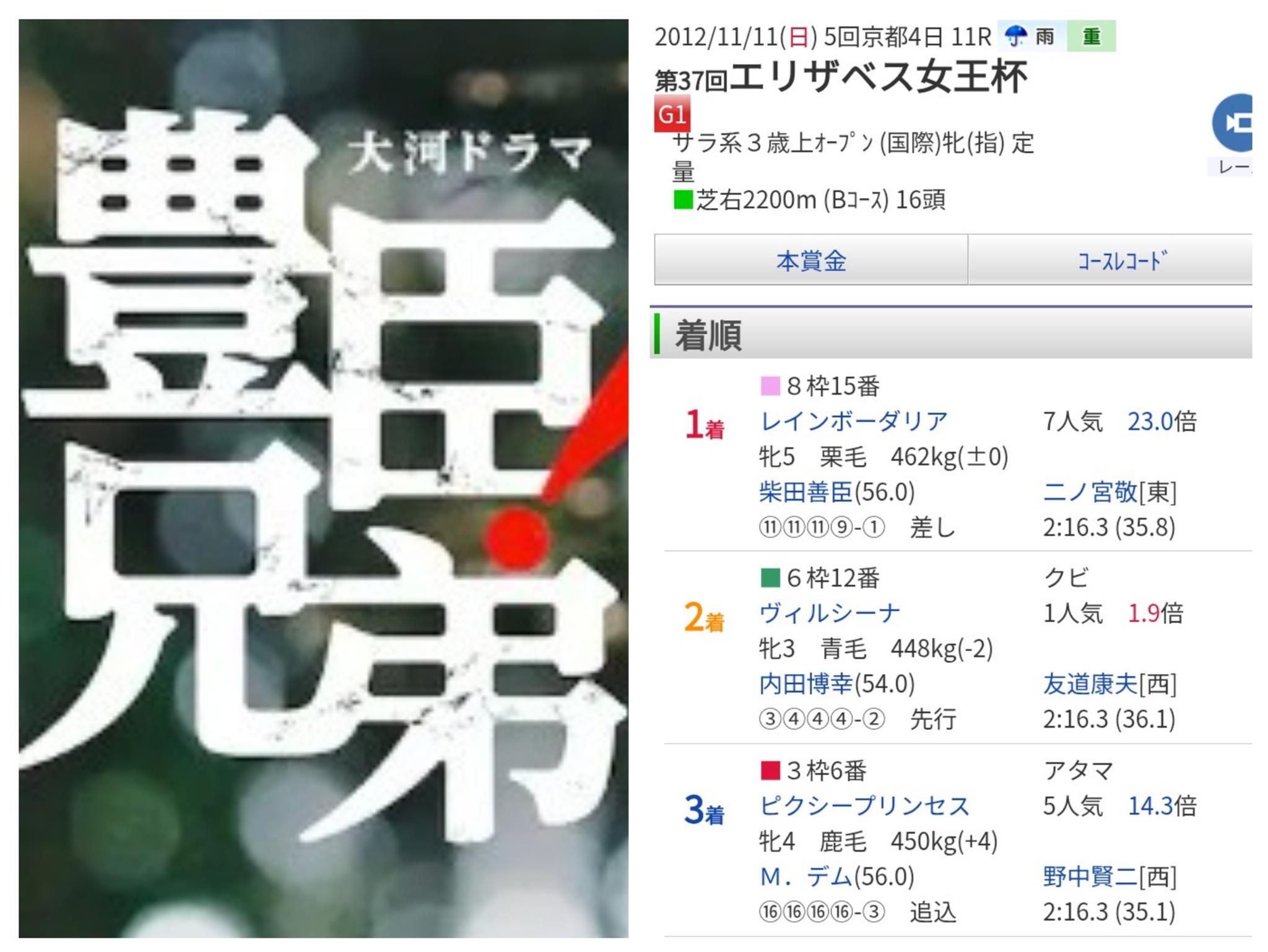 柴田善臣騎手が京都で勝ったGⅠレースは2012年の「エリザベス女王杯」だけなのでその時の出目【⑮→⑫→⑥】からソコを中心に