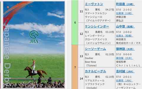 (日本ダービーゼッケンでもあります。)